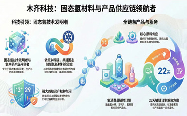 | 固态氢供应链 | 木齐可为合作伙伴建立固态氢供应链,为客户提供氢品开发定制、品牌设计包装、检测认证及知识产权搭建于一体的全案解决方案。 木齐科技依托武汉理工(淄博)先进陶瓷研究院、教育部生态环境功能材料重点实验室、山东理工大学等科研机构自主建成的木齐固态氢实验室、木鱼创服和氢产品开发中心三大平台,现已为国内外800+客户提供了固态氢产品供应链服务。 固态氢产业,木齐更专业。 |