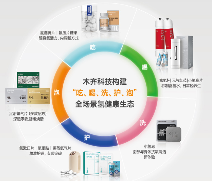 图4木齐科技获评为高新技术企业等 场景化创新:让固态氢融入日常生活 技术突破只是第一步,如何将固态氢技术转化为实际产品,真正服务于人们的健康生活,是木齐科技面临的又一挑战。 经过深入的市场调研和用户需求分析,木齐科技创造性地提出了“固态氢消费品”理念,围绕“吃、喝、洗、护、泡”五大日常生活场景,开发了一系列固态氢产品。 在“喝”的场景中,木齐科技开发了矿物氢水杯、氢瓷片等产品,让人们可以方便地饮用富氢水;在“吃”的场景中,研发了氢素压片糖果和泡腾氢气片等产品,探索固态氢在食品中的应用;在“洗护”场景中,推出了小氢皂、氢面膜、氢眼贴和口腔富氢抑菌片等个人护理产品;在“泡”的场景中,开发了足浴氢气片等产品,让氢健康融入日常养生。 “我们不做‘高大上’的概念产品,而是要做老百姓用得上的健康产品,”产品负责人介绍说,“每一个产品研发前,我们都会问自己:这个产品真的能解决用户的健康问题吗?使用起来方便吗?价格合理吗?” 这种以用户为中心的产品开发理念,使得木齐科技的固态氢产品迅速获得了市场认可。从最初的市场测试,到现在专为大客户提供贴牌订制供应链路线,木齐固态氢消费品正通过大客户的渠道走进越来越多家庭的日常生活。